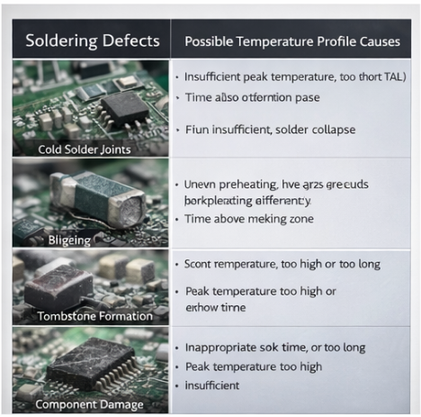 Too high a peak temperature: Component thermal damage, PCB deformation, excessively thick IMC, brittle solder joints.