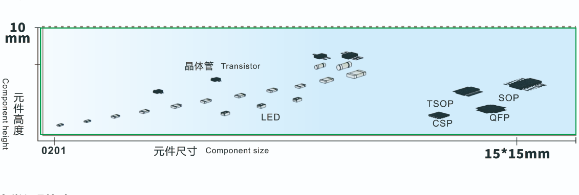 • Component Range: Handles components from 0201 chips (1.0mm × 0.5mm) to large 40mm × 40mm devices