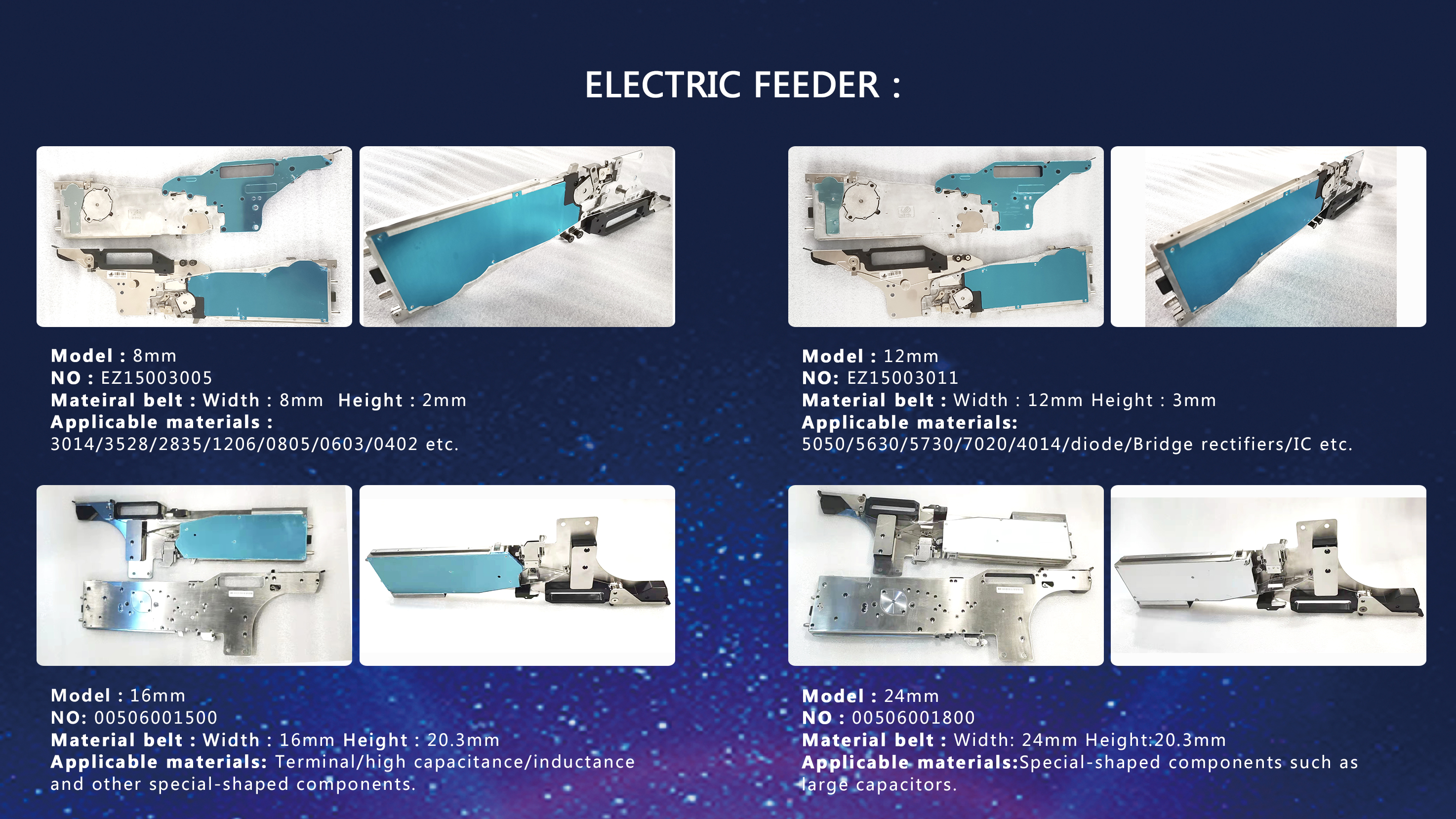 The following is the most common feeder size classification system in the industry, covering more than 80% of surface mount technology (SMT) applications.