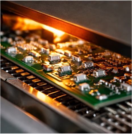 • Stencil Printing – Solder paste is precisely applied to PCB pads